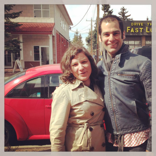 Rain soaked and happy visiting CBC Winnipeg! Thanks to Kaj and Andrew for lunch, and Kaj for the photo.