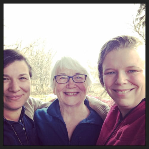 Me, Marge, Gaby. Last I saw Marge was in 2012. We commiserated on recent lost and talked yoga. Today she noticed how differently I walk now compared to then (Kneeraiser FTW!) and she sang us You Are My Sunshine on her uke.